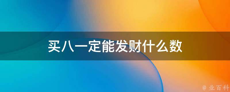 买八一定能发财什么数
