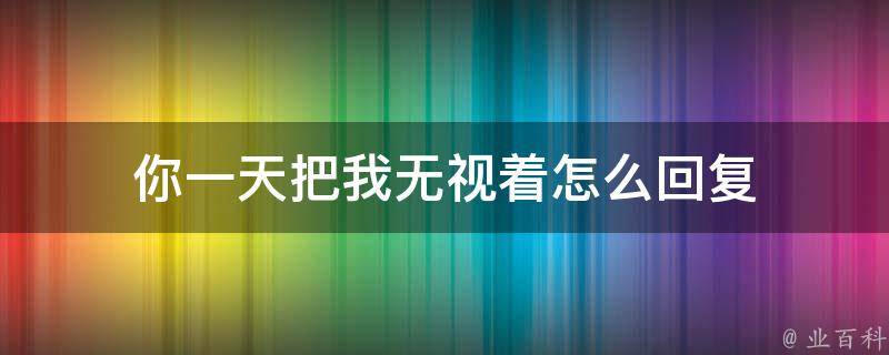 你一天把我无视着,可以回复没有无视你,我这一天都忙于工作,非常抱歉。在人际交往中,及时回复信息和电话是很重要的。如果确实有事情耽搁了,也需要及时告知对方,避免对方产生误解和不满。同时也要注意自己的言行举止,不要给对方留下不好的印象。