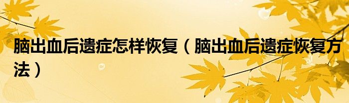 大家好,乐天来为大家解答以下的问题,脑出血后遗症怎样恢复,脑出血后遗症恢复方法很多人还不知道,现在让我们一起来看看吧!