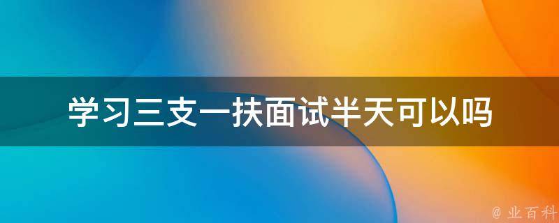 学习三支一扶面试半天不可以。因为三支一扶面试通常会考察考生的综合素质、专业知识、应变能力等多方面能力,需要考生进行充分的准备和练习。三支一扶面试中常见的题型包括自我介绍、综合分析、组织协调、人际关系等,你需要针对这些题型进行准备,总结出一些答题思路和技巧。