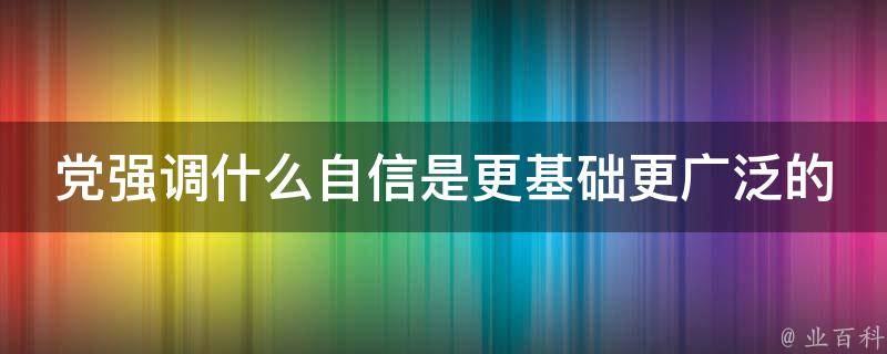 党强调文化自信是更基础更广泛的。文化自信,是更基础、更广泛、更深厚的自信。在5000多年文明发展中孕育的中华优秀传统文化,在党和人民伟大斗争中孕育的革命文化和社会主义先进文化,积淀着中华民族最深层的精神追求,代表着中华民族独特的精神标识。