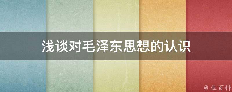 浅谈对毛泽东思想的认识