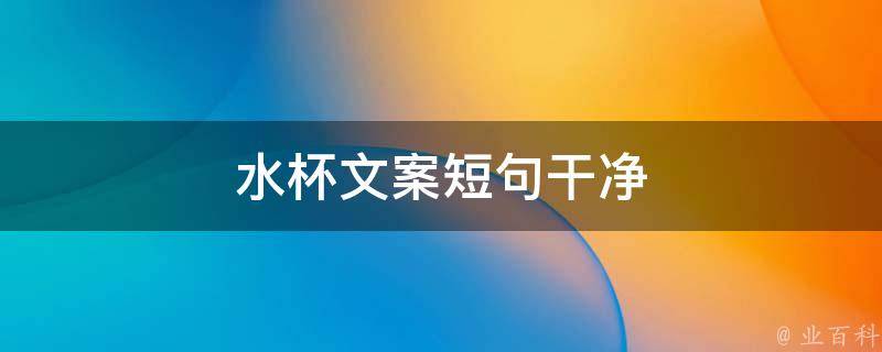 最佳答案1、一杯清泉,洗涤心灵。2、水杯在手,健康我有。3、水杯,记录生活的每一滴甘泉。4、喝水,也是一种态度。5、一杯清水,一份健康。6、喝水,也要有仪式感。7、水杯,见证每一刻的美好。