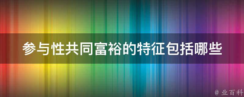 1、参与性:共同富裕强调的是全体人民的参与和共享,不仅仅是少数人的富裕。这意味着每个人都有机会参与到经济发展和社会进步中,都有权利分享社会发展的成果。