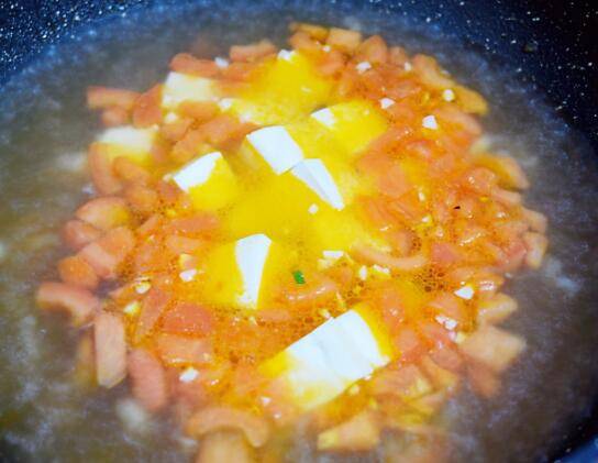 4、大火烧开,放入嫩豆腐。