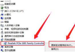 然后找到点击“网卡适配器”下的网卡名称,右键选择卸载,然后选择“更新驱动程序”。