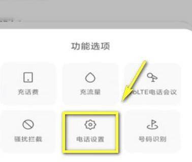 弹出框中选择“电话设置”。
