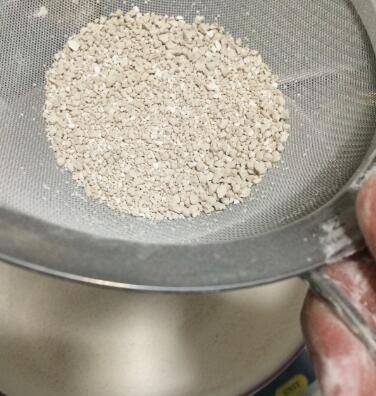 1、山芋粉将它筛过,粗颗粒捻细,这样成品不会有生面疙瘩。
