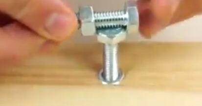 使用一枚长一点的螺丝钉,外加一个螺帽;将螺丝钉跟螺母套上去;然后转动;先放上去;螺丝上紧;感觉受力之后,逆时针扭即可。