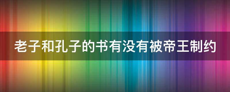 老子和孔子的书有被帝王制约。在中国古代,帝王制是一种政治制度,帝王拥有完全的政治权力,帝王制也在一定程度上对思想家和哲学家产生了影响。老子和孔子都是中国古代著名的思想家和哲学家,他们的著作在古代中国政治制度的影响下也受到了一定程度的制约。但是,由于这两位思想家的思想和著作都深刻影响了中国文化,所以它们最终还是得到了广泛的传播和发展。