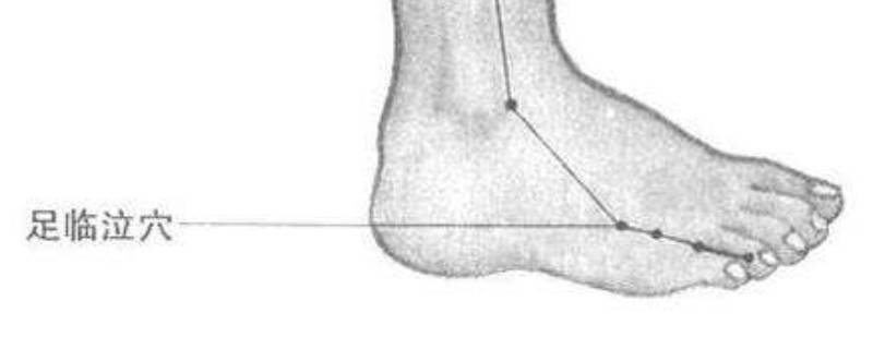1、足临泣穴位于足背外侧,第四趾、小趾跖骨夹缝中。