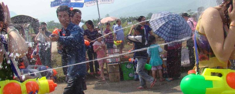 《车里》一书中有段记载:元旦之晨,所有贵族平民,皆沐浴更衣,诣佛寺赕佛。妇女辈则各担水一挑,为佛洗尘,由顶至踵,淋漓尽致,泥佛几为之坍倒。浴佛之后民众便互相以水相浇,泼水戏之能能事。这段记载虽不尽其祥,但已告诉人们,泼水是傣族过年时必须举行的一项活动。上文所说的元旦并非公历的1月1日,而是傣历新年来临之日。