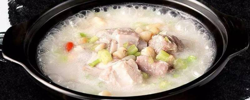 3、下入淘洗好的小米和排骨。
