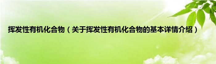 本文关于挥发性有机化合物的基本详情介绍就讲解完毕,希望对大家有所帮助。