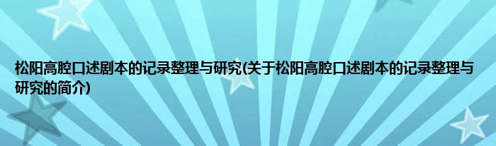 本文关于松阳高腔口述剧本的记录整理与研究的简介就讲解完毕,希望对大家有所帮助。