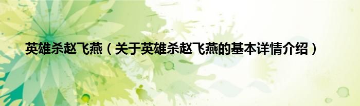 本文关于英雄杀赵飞燕的基本详情介绍就讲解完毕,希望对大家有所帮助。