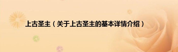 本文关于上古圣主的基本详情介绍就讲解完毕,希望对大家有所帮助。