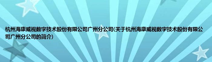 大家好,杭州海康威视数字技术股份有限公司广州分公司,关于杭州海康威视数字技术股份有限公司广州分公司的简介很多人还不知道,现在让我们一起来看看吧!