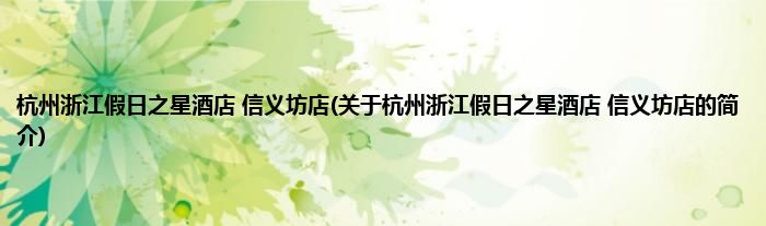 1、 浙江假日之星酒店—信义坊店是杭州国际假日酒店有限公司旗下的一家经济型酒店品牌,信义坊店位于杭州市区的莫干山路景观大道上,毗邻信义坊文化商业中心。