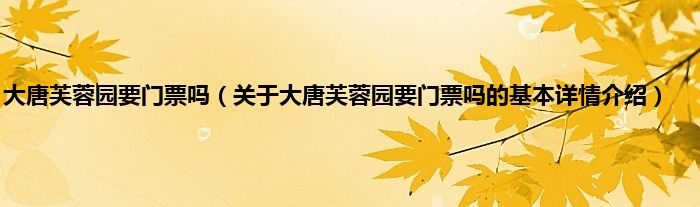 本文关于大唐芙蓉园要门票吗的基本详情介绍就讲解完毕,希望对大家有所帮助。