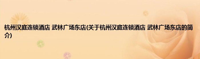 杭州汉庭连锁酒店武林广场东店(关于杭州汉庭连锁酒店武林广场东店的简介)