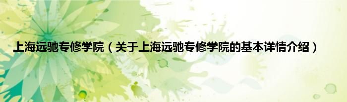 本文关于上海远驰专修学院的基本详情介绍就讲解完毕,希望对大家有所帮助。