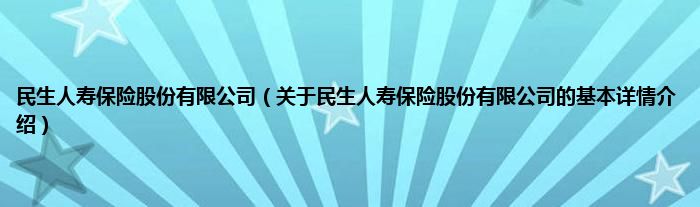 民生人寿保险股份有限公司(关于民生人寿保险股份有限公司的基本详情介绍)