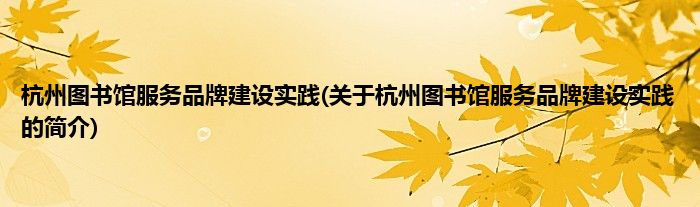 杭州图书馆服务品牌建设实践(关于杭州图书馆服务品牌建设实践的简介)