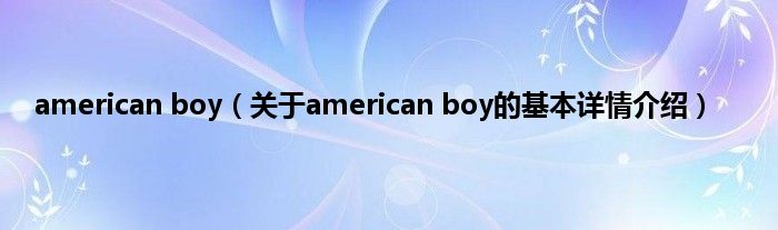 本文关于american boy的基本详情介绍就讲解完毕,希望对大家有所帮助。