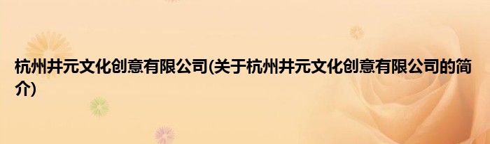 本文关于杭州井元文化创意有限公司的简介就讲解完毕,希望对大家有所帮助。