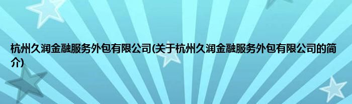 本文关于杭州久润金融服务外包有限公司的简介就讲解完毕,希望对大家有所帮助。