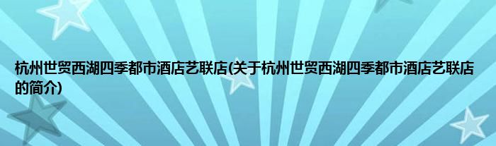 大家好,杭州世贸西湖四季都市酒店艺联店,关于杭州世贸西湖四季都市酒店艺联店的简介很多人还不知道,现在让我们一起来看看吧!