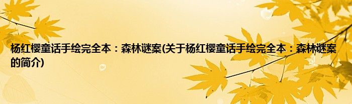 本文关于杨红樱童话手绘完全本:森林谜案的简介就讲解完毕,希望对大家有所帮助。