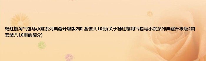 本文关于杨红樱淘气包马小跳系列典藏升级版2辑 套装共10册的简介就讲解完毕,希望对大家有所帮助。
