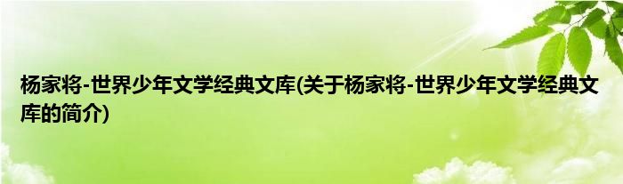 本文关于杨家将-世界少年文学经典文库的简介就讲解完毕,希望对大家有所帮助。