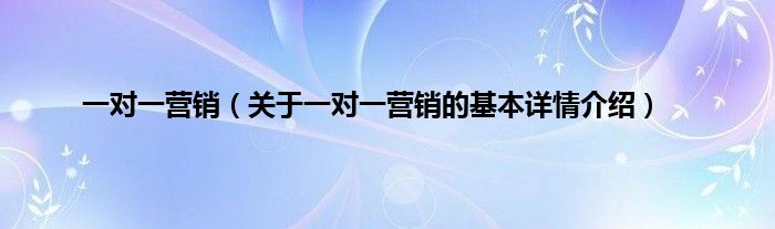 本文关于一对一营销的基本详情介绍就讲解完毕,希望对大家有所帮助。