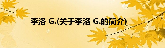大家好,李洛,G.,关于李洛,G.的简介很多人还不知道,现在让我们一起来看看吧!