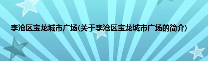 最佳答案大家好,李沧区宝龙城市广场,关于李沧区宝龙城市广场的简介很多人还不知道,现在让我们一起来看看吧! 1、 李沧宝龙城市广场是香港上市企业——宝龙地产控股在青岛投资建设的第二个大型城市综合体项目。本文关于李沧区宝龙城市广场的简介就讲解完毕,希望对大家有所帮助。
