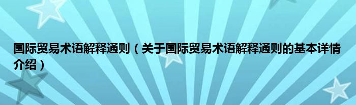 本文关于国际贸易术语解释通则的基本详情介绍就讲解完毕,希望对大家有所帮助。