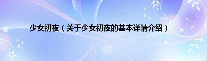 本文关于少女初夜的基本详情介绍就讲解完毕,希望对大家有所帮助。