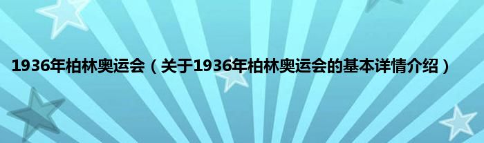 本文关于1936年柏林奥运会的基本详情介绍就讲解完毕,希望对大家有所帮助。