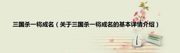 本文关于三国杀一将成名的基本详情介绍就讲解完毕,希望对大家有所帮助。