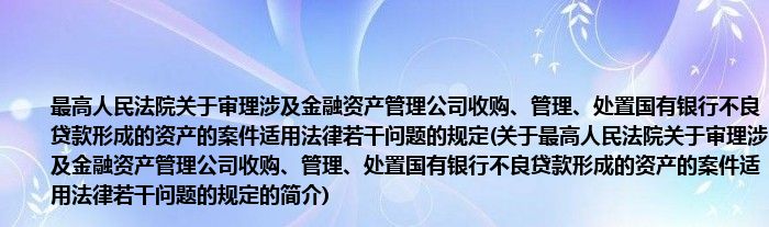 本文关于最高人民法院关于审理涉及金融资产管理公司收购、管理、处置国有银行不良贷款形成的资产的案件适用法律若干问题的规定的简介就讲解完毕,希望对大家有所帮助。