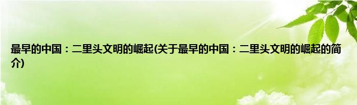 本文关于最早的中国:二里头文明的崛起的简介就讲解完毕,希望对大家有所帮助。