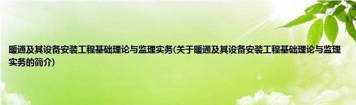 本文关于暖通及其设备安装工程基础理论与监理实务的简介就讲解完毕,希望对大家有所帮助。