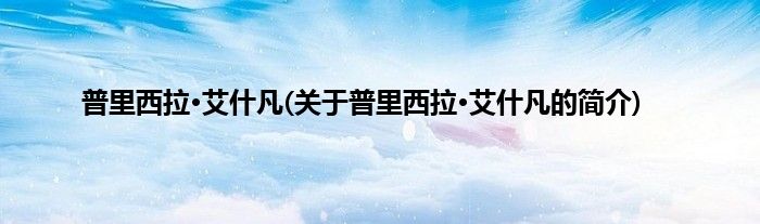 大家好,普里西拉·艾什凡,关于普里西拉·艾什凡的简介很多人还不知道,现在让我们一起来看看吧!