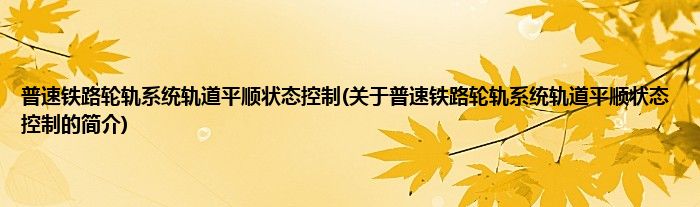 本文关于普速铁路轮轨系统轨道平顺状态控制的简介就讲解完毕,希望对大家有所帮助。