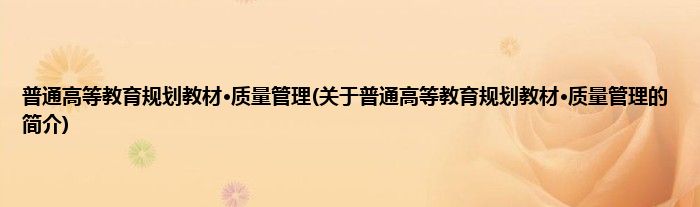 大家好,普通高等教育规划教材·质量管理,关于普通高等教育规划教材·质量管理的简介很多人还不知道,现在让我们一起来看看吧!
