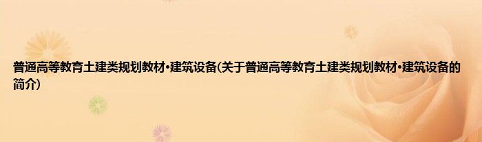 1、 《普通高等教育土建类规划教材·建筑设备》是高等工科院校土木工程、工程管理、建筑学、城市规划等土建类专业的教材。