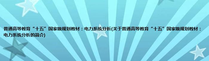 本文关于普通高等教育“十五”国家级规划教材:电力系统分析的简介就讲解完毕,希望对大家有所帮助。